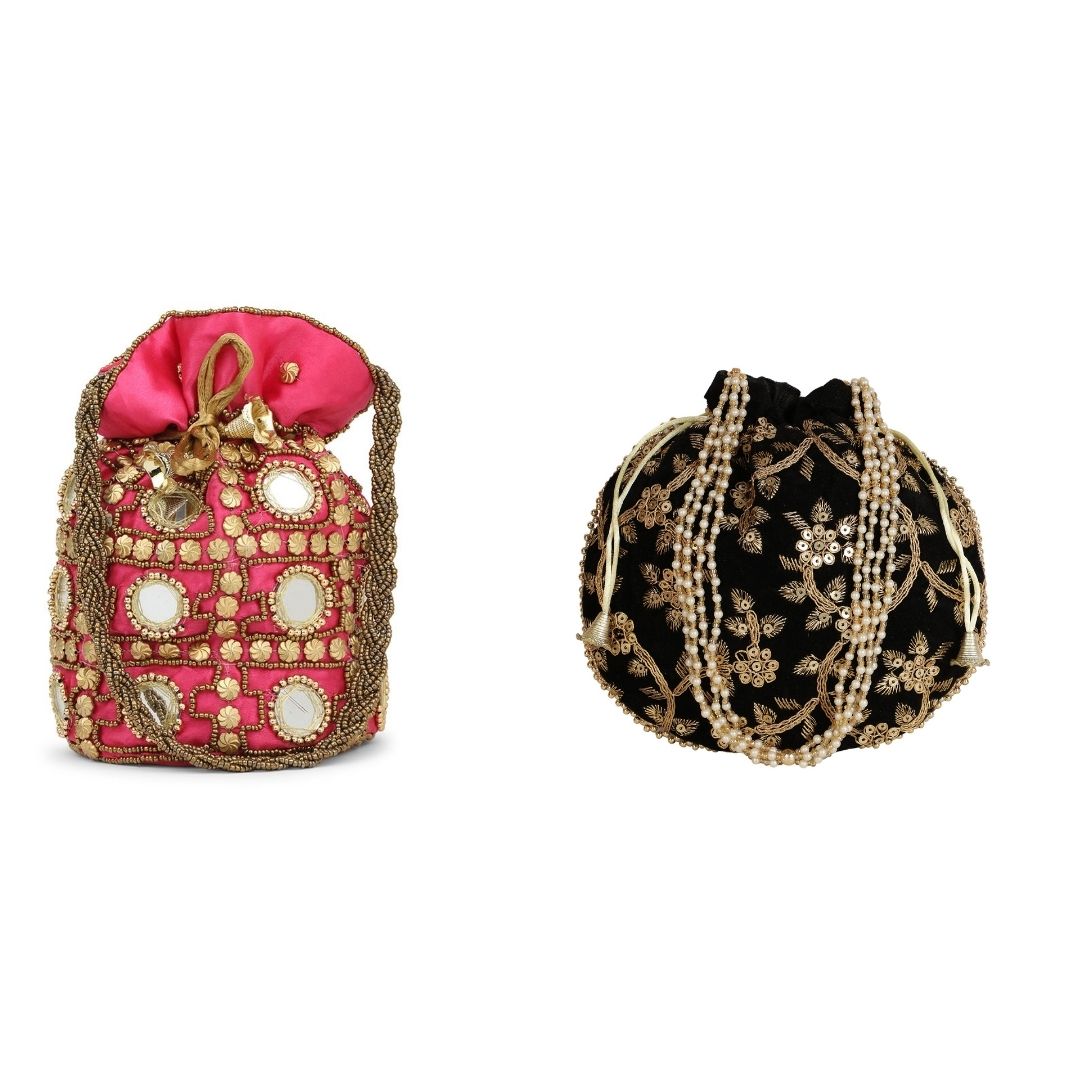 Combo - Designer Embroidered Potli Bag - Red & Pink