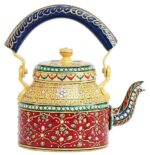 Handpainted Rajasthani Traditional Aluminium Colourfull Decorative Tea Kettle(8.5 8.25 5.5 Inches)